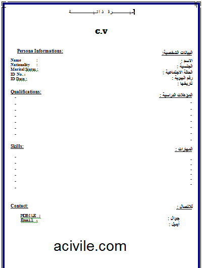 نموذج سيرة ذاتية عربي انجليزي جاهز وورد ومفرغ Doc موقع محتويات